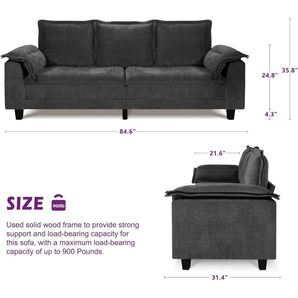 - 【Modern & Comfy Couch】 sofa has a classic look and comfort to enjoy for many years. Carefully designed with spacious seating area, 2-layer thickened cushions and elegant shapes. Perfect for many or just you when you want some cozy time, the 22 inch seat depth makes this 3 seats sofa super for a nap.