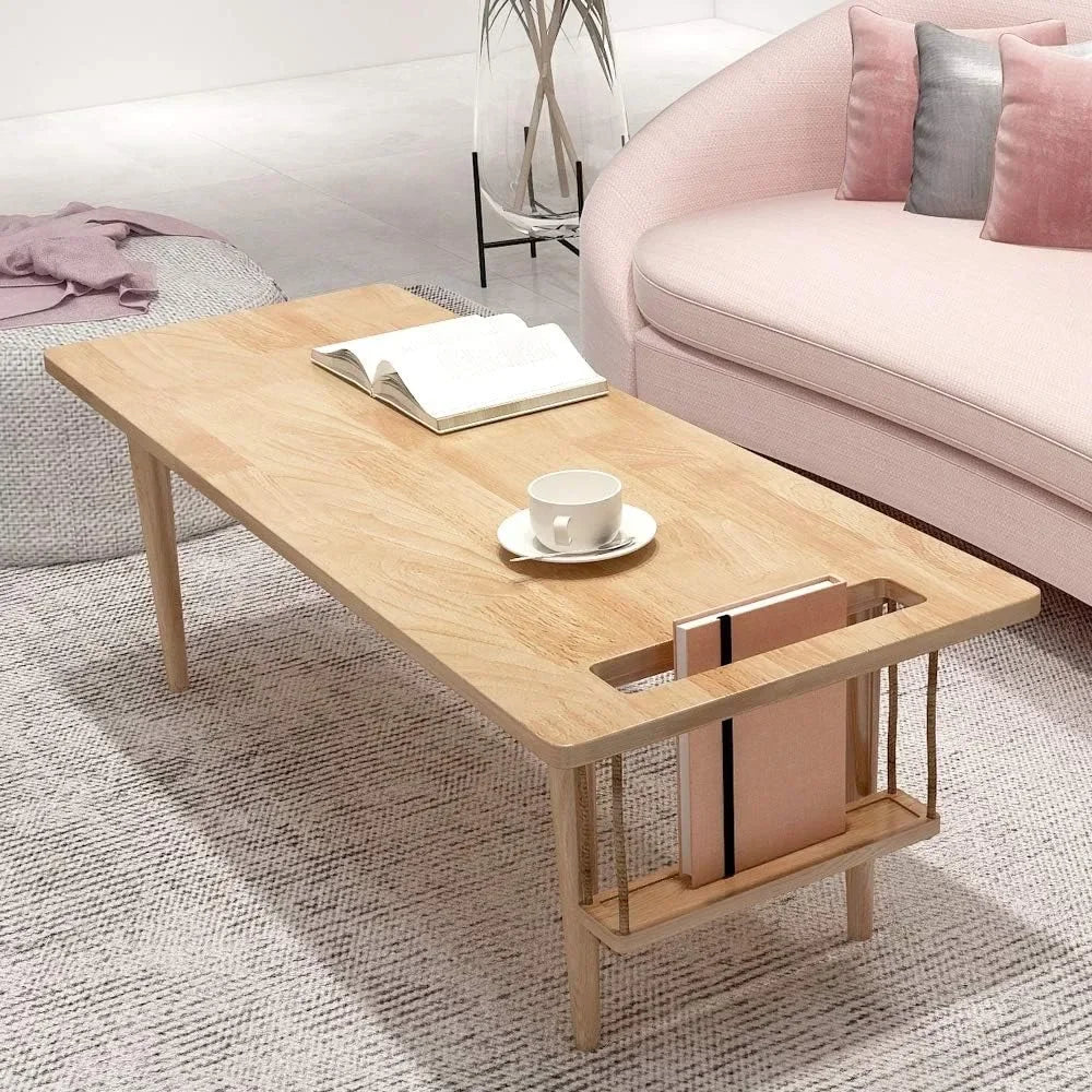 Modern mini swinging wooden tea table, made of real solid wood suitable for family living rooms, measuring 47.25 inches inlength